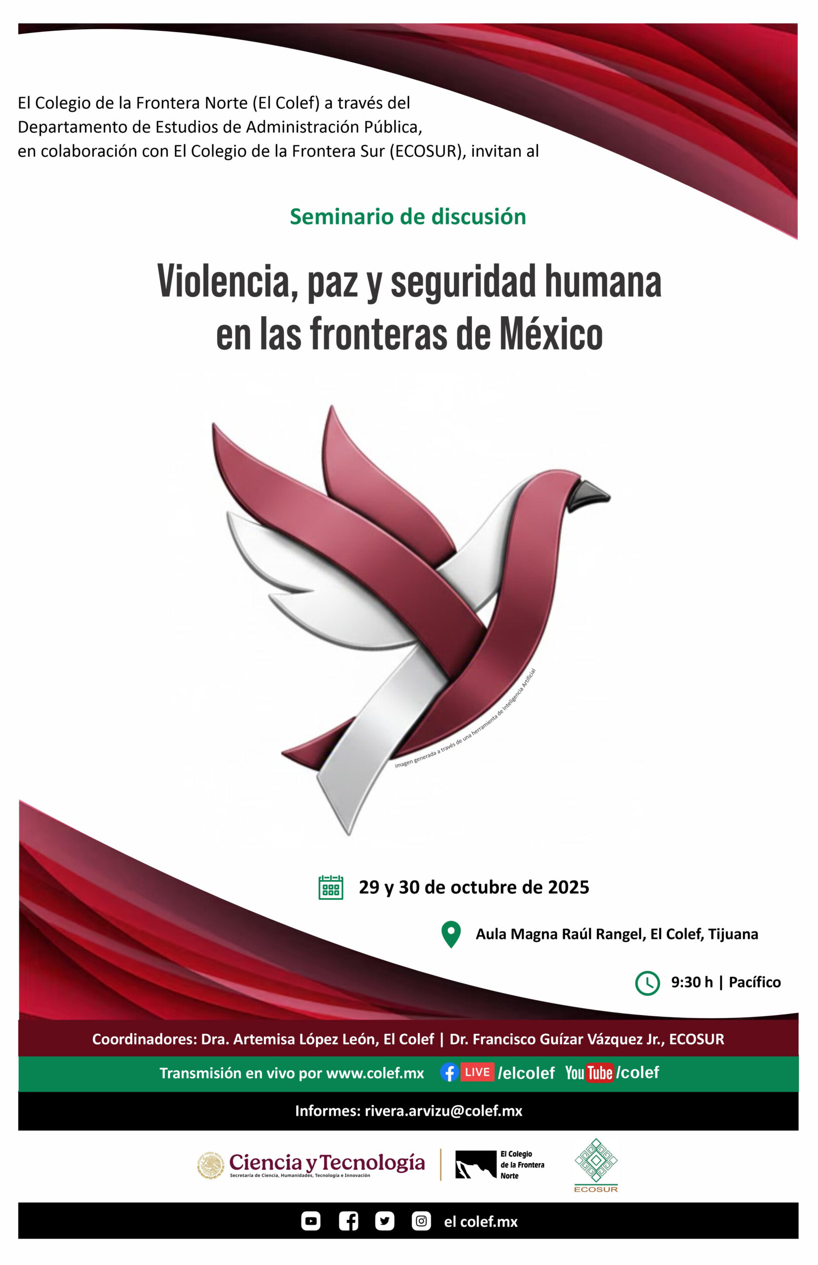 (Oct-2025) SEMINARIO DE DISCUSIÓN. Violencia, paz y seguridad humana en las fronteras de México Programa del evento Video 29 de octubre Video 30 de octubre