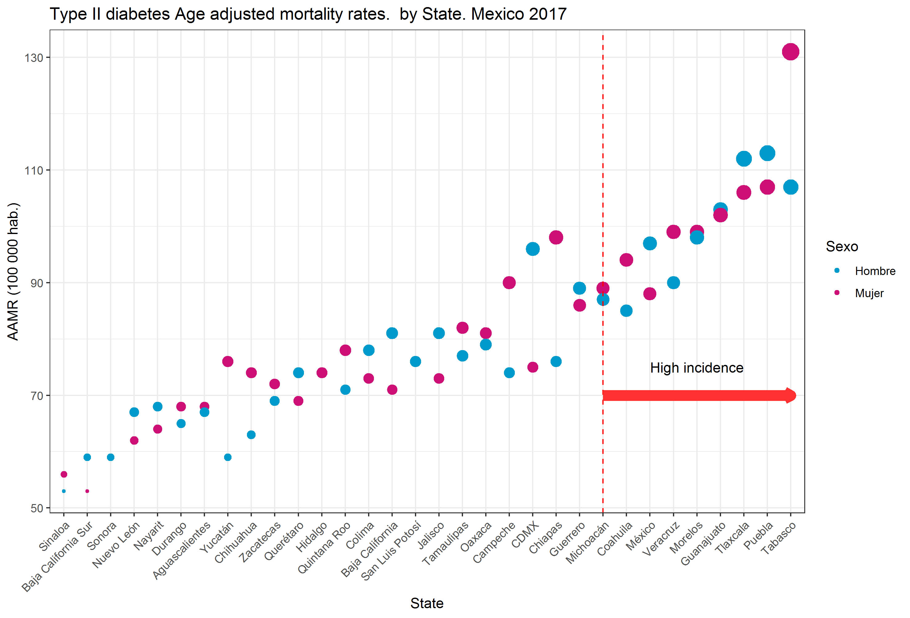 De acuerdo a la investigación realizada por el Dr. José Luis Manzanares Rivera, Profesor-Investigador del Departamento de Estudios Urbanos y del Medio Ambiente de El Colegio de la Frontera Norte, Type 2 diabetes mortality at Mexican borders,