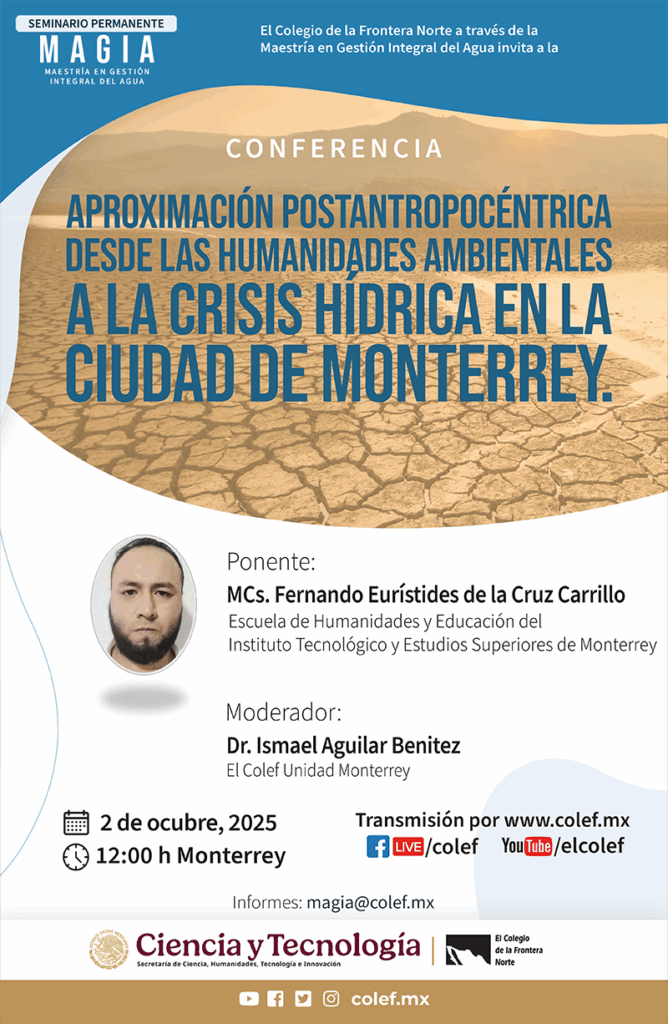Conferencia «Aproximación postantropocéntrica desde las humanidades ambientales a la crisis hídrica en la ciudad de Monterrey»