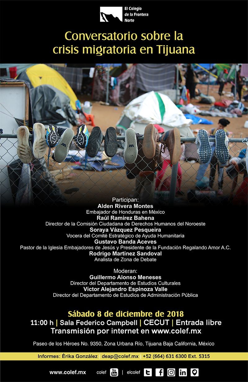 El conversatorio tiene el objetivo de realizar una discusión sobre las diferentes aristas y perspectivas del fenómeno migratorio en Tijuana, dando la voz a representantes de la sociedad civil y académicos que han acompañado a la caravana migrante.