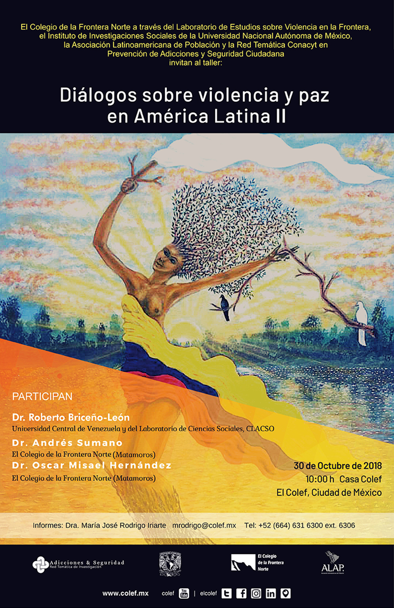 El Colegio de la Frontera Norte y el Laboratorio sobre estudios de violencia en la frontera (LEVIF) invitan al taller: Diálogos sobre violencia y paz en América Latina II, el próximo martes 30 de octubre a las 10:00 horas Centro en Casa Colef.