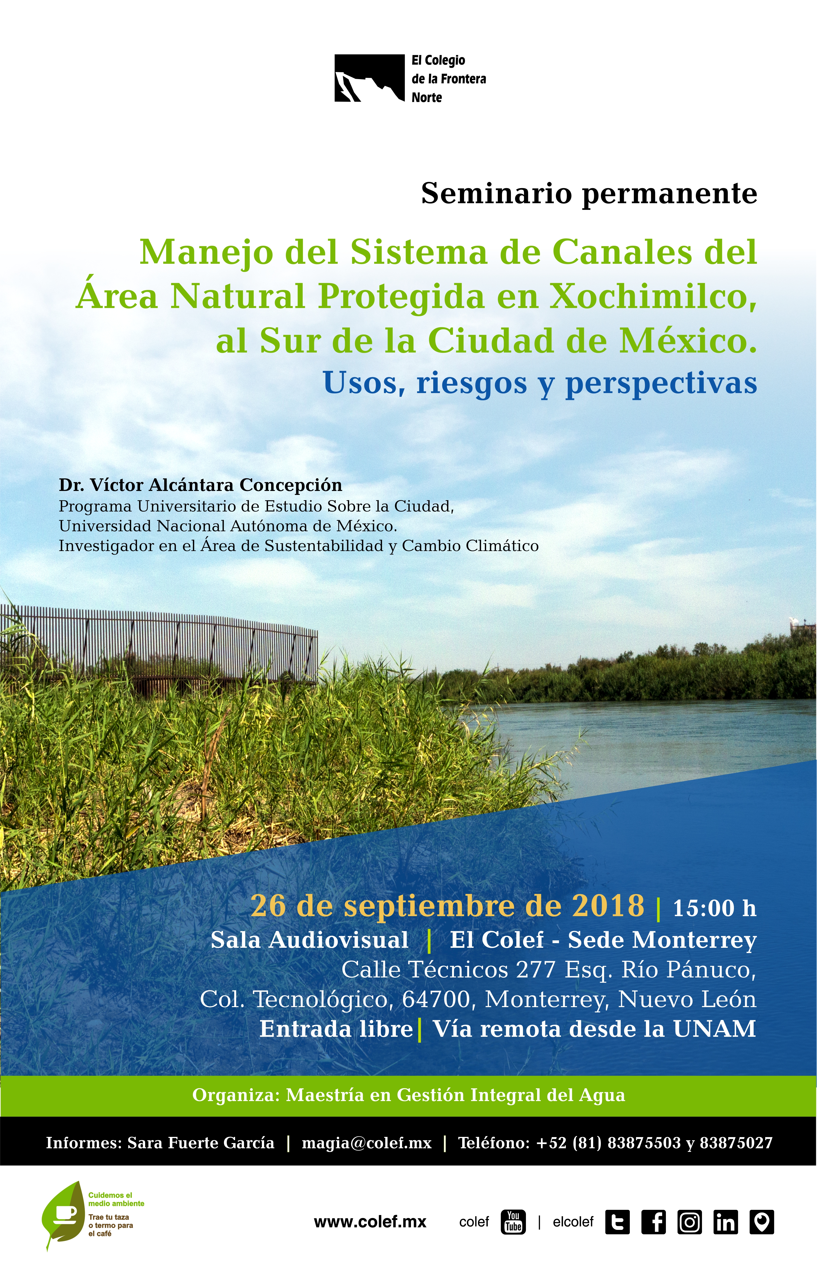 El objetivo de esta presentación es exponer la problemática del área natural protegida de Xochimilco, al sur de la Ciudad de México, las complicaciones en el manejo del agua y las propuestas para su rehabilitación o rescate.