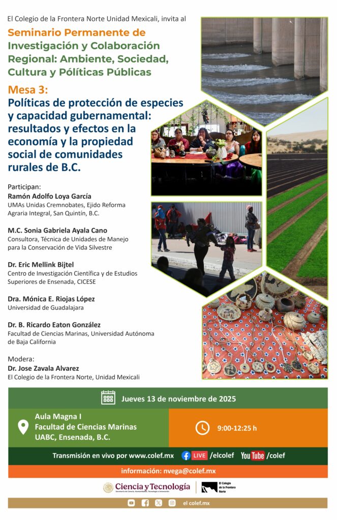 Mesa 3 del Seminario Permanente de Investigación y Colaboración Regional: Ambiente, Sociedad, Cultura y Políticas Públicas