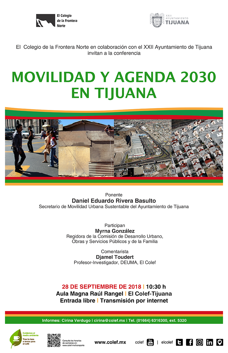 El Colegio de la Frontera Norte en colaboración con el XXII Ayuntamiento de Tijuana, invitan a la conferencia Movilidad y Agenda 2030 en Tijuana