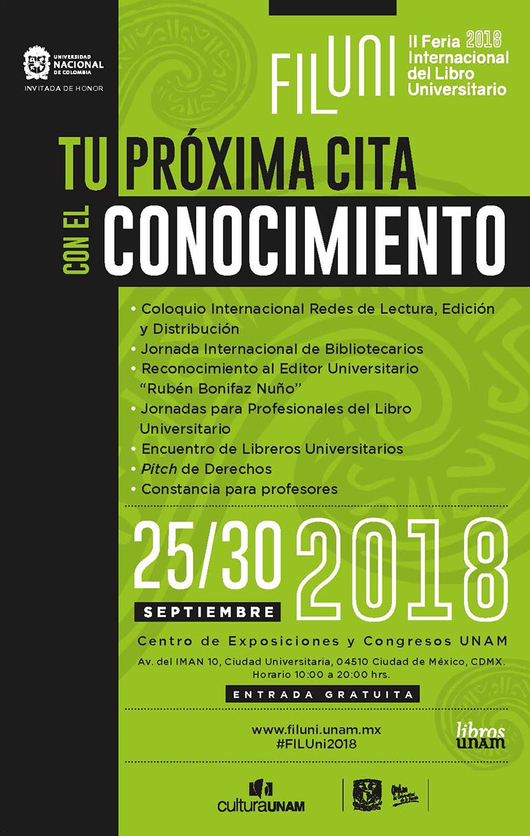 Por primera vez el Colef participará en la Feria Internacional del Libro Universitario, UNAM del 25 al 30 de septiembre de 2018 en La Universidad Nacional Autónoma de México. Si estás en la Ciudad, asiste a la feria y visita el Stand D07 de El Colef.