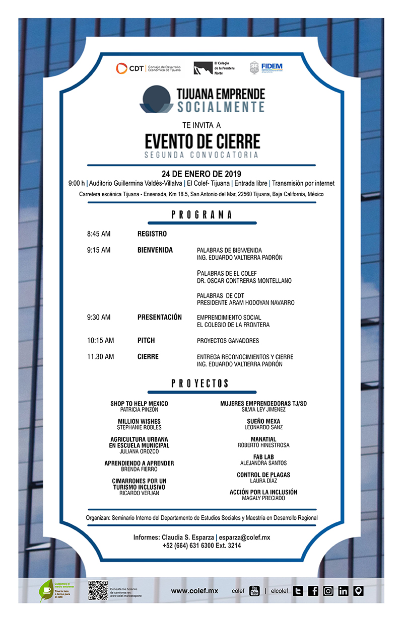 Auditorio Guillermina Valdés Villalva | El Colef Tijuana | Carretera escénica Tijuana - Ensenada, Km 18.5, San Antonio del Mar, 22560 Tijuana, Baja California, México.