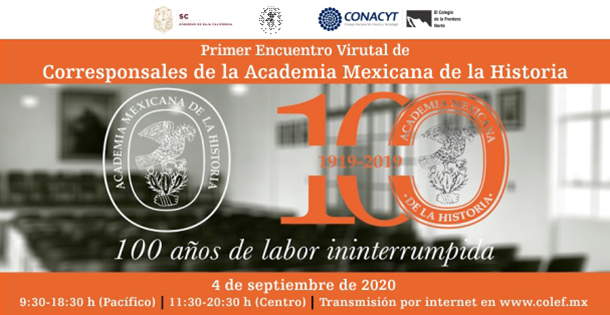 El Colegio de la Frontera Norte (El Colef), en coordinación con la Academia Mexicana de la Historia y la Secretaría de Cultura de Baja California, invitan al Primer Encuentro Virtual: Corresponsales de la Academia Mexicana de la Historia; el viernes 4 de septiembre de 2020.