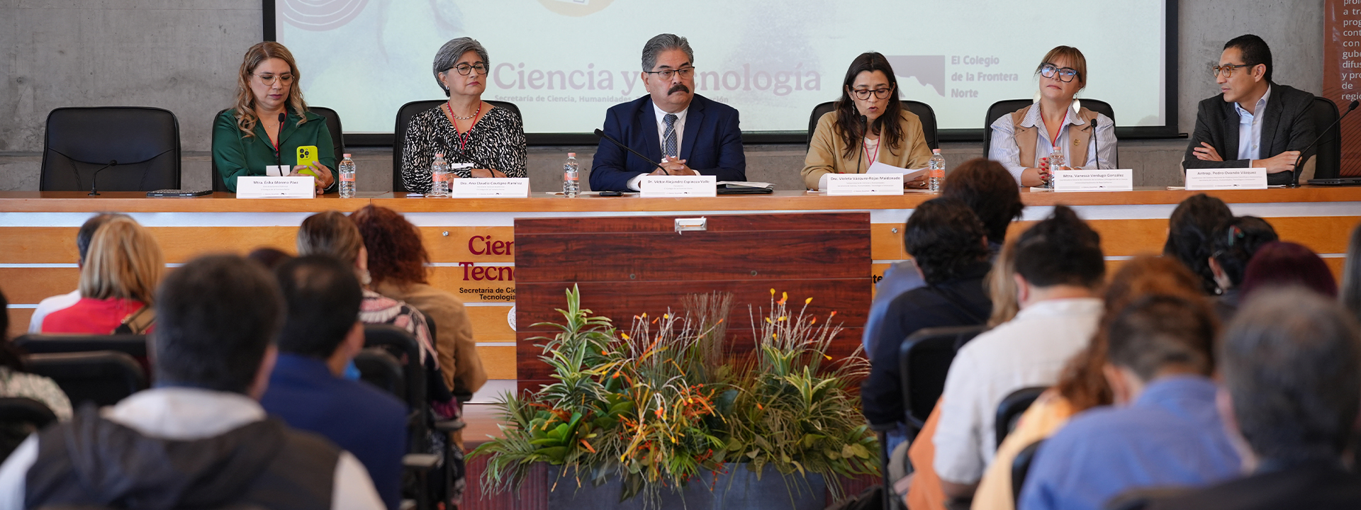 En la inauguración participaron la Dra. Violeta Vázquez-Rojas Maldonado, subsecretaria de Ciencia, Tecnología e Innovación (SECIHTI); el Dr. Víctor Alejandro Espinoza Valle, presidente de El Colef; la Dra. Ana Claudia Coutigno, Secretaria General Académica, la Mtra. Érika Moreno Páez, directora general Editorial; el antropólogo Pedro Ovando Vázquez y la Mtra. Vanessa Verdugo González, Coordinadora General de Extensión de la Cultura y Divulgación de la Ciencia de la Universidad Autónoma de Baja California.