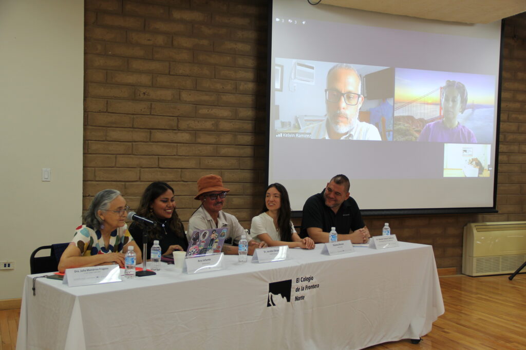 Durante la presentación participaron Ana Infante, muralista; Paloma Rincón, documentalista; Kelvin Ramírez, activista; el señor Jacobo Orozco, padre buscador; la Dra. Julia Estela Monárrez Fragoso, de El Colef Unidad Ciudad Juárez; el Dr. Salvador Salazar González, de la Universidad Autónoma de Ciudad Juárez; y la Dra. Ana Laura Ramírez Vázquez, estancia posdoctoral en El Colef Unidad Juárez.