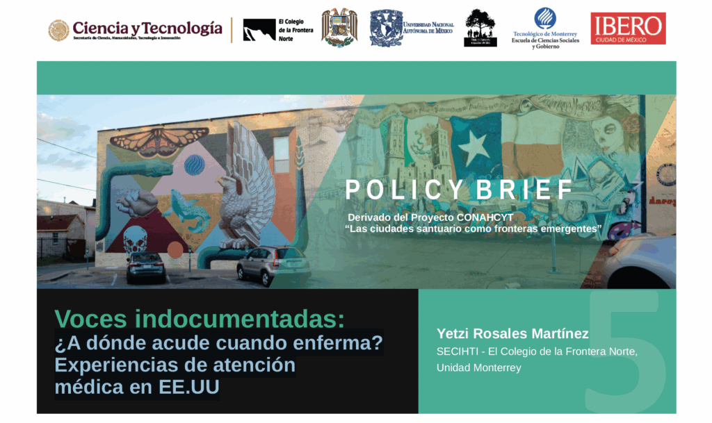 Este documento narra las experiencias de atención médica de personas mexicanas sin documentos en Estados Unidos. En el contexto de una política migratoria criminalizante y una exclusión histórica de los programas de salud federales, se rescatan las voces de personas mexicanas y su experiencia cotidiana en los servicios de salud en jurisdicciones con políticas pro-migrantes. Se usó información de una encuesta no representativa y entrevistas semiestructuradas realizadas durante 2020-2023 en las áreas metropolitanas de Nueva York, Chicago, Los Ángeles y Dallas-Fort Worth. Se encontró que los lugares a donde más recurre esta población son los centros de salud y hospitales públicos y, en menor medida, dispensarios en iglesias y Ventanillas de salud de los consulados mexicanos. Casi el 80% de las personas encuestadas tenía 10 años o más residiendo en EE.UU., dato relevante que refiere una experiencia acumulada navegando los sistemas de salud locales.